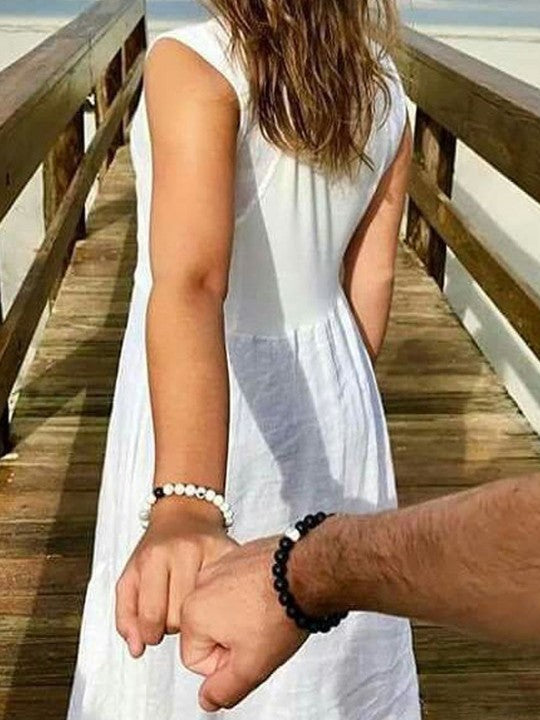 Black Tourmaline & White Howlite Natural Healing Crystal Beads Bracelet